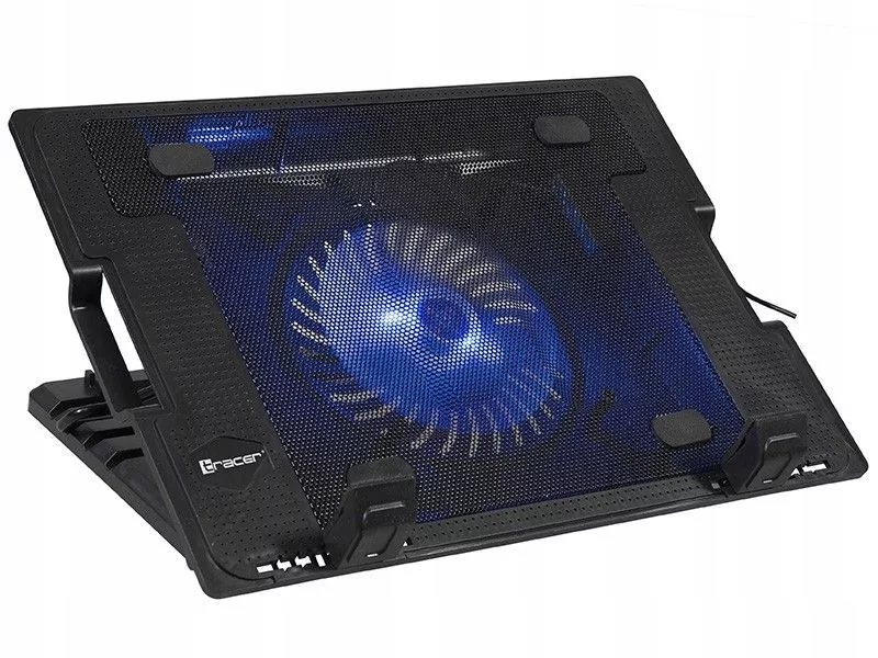 Podstawka chłodząca TRACER Icestorm 17\" to urządzenie stworzone z myślą o wszystkich użytkownikach notebooków. Wbudowany duży, cichy wentylator (125mm) podświetlony na niebiesko. Osobny przycisk do włączania i wyłączania. Pasuje do każdego rozmiaru komputera od 12\" do 17\". Wszystko to zasilane przez odpinany kabel USB - nie wymaga dodatkowego zasilacza zewnętrznego. Lekka i wytrzymała konstrukcja z tworzywa sztucznego z metalową kratką jest bardzo odporna na upadki i łatwa w transporcie wraz z laptopem. Dodatkowe składane nóżki do ustawiania laptopa na poziom wyżej zapewnia lepszą postawę ciała w czasie pracy.
