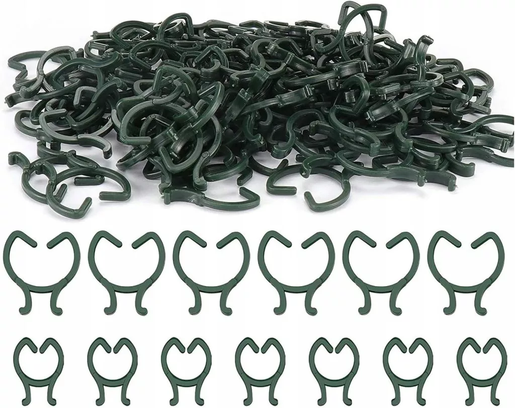 Wysoka jakość Wykonany z wysokiej jakości tworzywa sztucznego trwały i wytrzymały silna zdolność mocowania odporny na warunki atmosferyczne i nie starzeje się wielokrotnego użytku Zapewnia wsparcie Mocno zaciska łodygę i sadzonki aby zapewnić wsparcie dla wzrostu roślin bez uszkadzania lub utrudniania wzrostu roślin Łatwy w użyciu Wystarczy przycisnąć lub poluzować uchwyt aby mocno przymocować łodygę i sadzonki łatwy do usunięcia bez kłopotów spowodowanych wiązaniem opasek kablowych i linek Rozmiar 100 szt. dużych klipsów 35 x 3 cm i 100 szt. małych klipsów 25 x 2 cm aby zaspokoić potrzeby różnych rozmiarów łodygi roślin Zastosowanie Zwykle stosowany do wspomagania uprawy roślin idealny do wzrostu kwiatów pomidorów ogórków papryki i warzyw ogrodowych