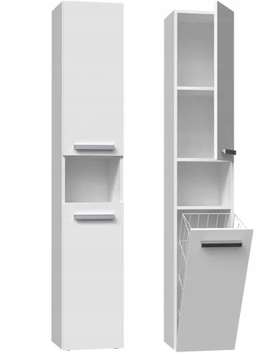 SZAFKA ŁAZIENKOWA REGAŁ SŁUPEK KOSZ NEL III BIAŁY MAT