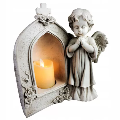✨ Subtelne światło LED – ciepła, biała poświata dodaje uroku i podkreśla wyjątkowy charakter figurki. Symbol opieki i wiecznej pamięci – piękna dekoracja nagrobna, która wyraża miłość i szacunek. Wysoka jakość wykonania – trwałe materiały zapewniają długowieczność i elegancki wygląd.