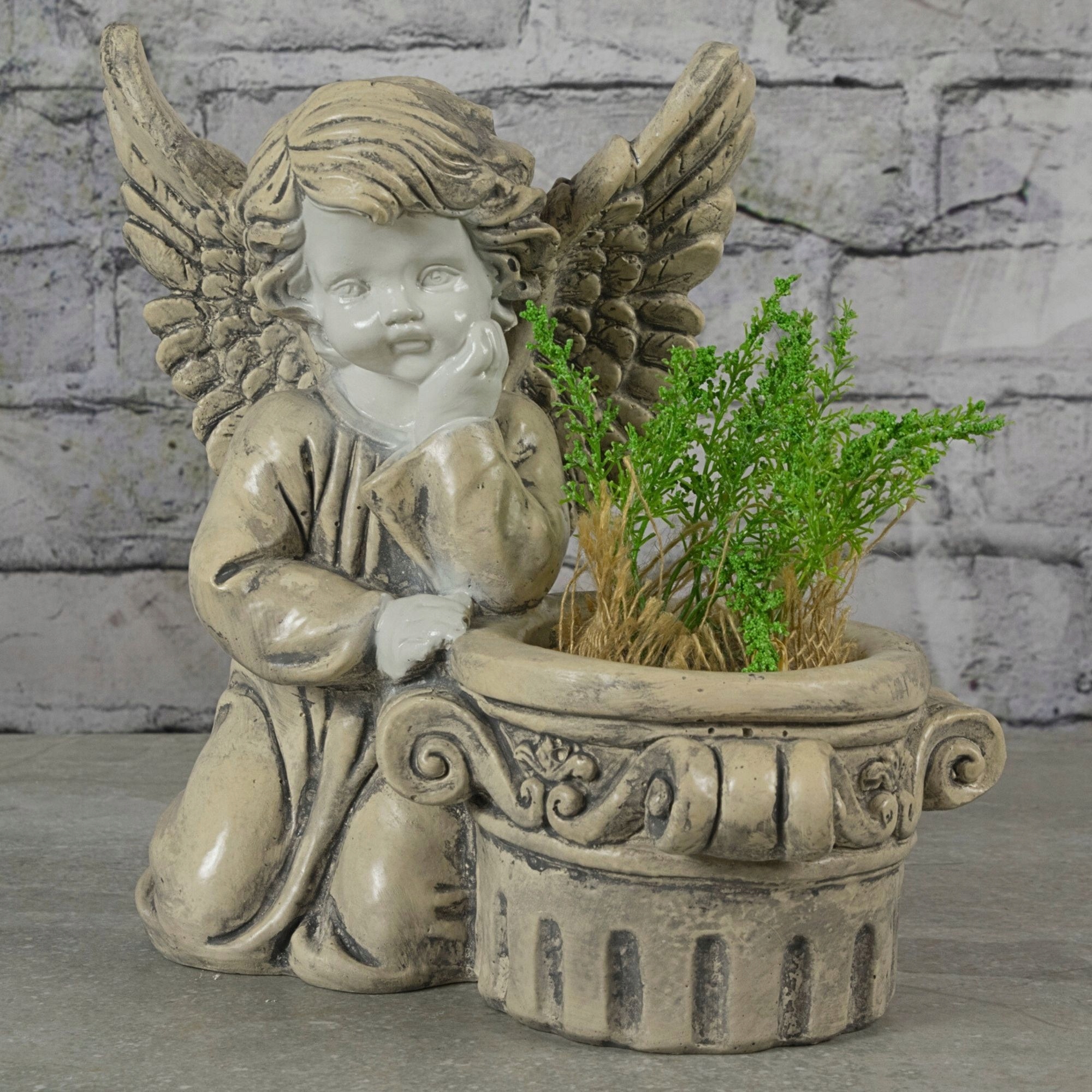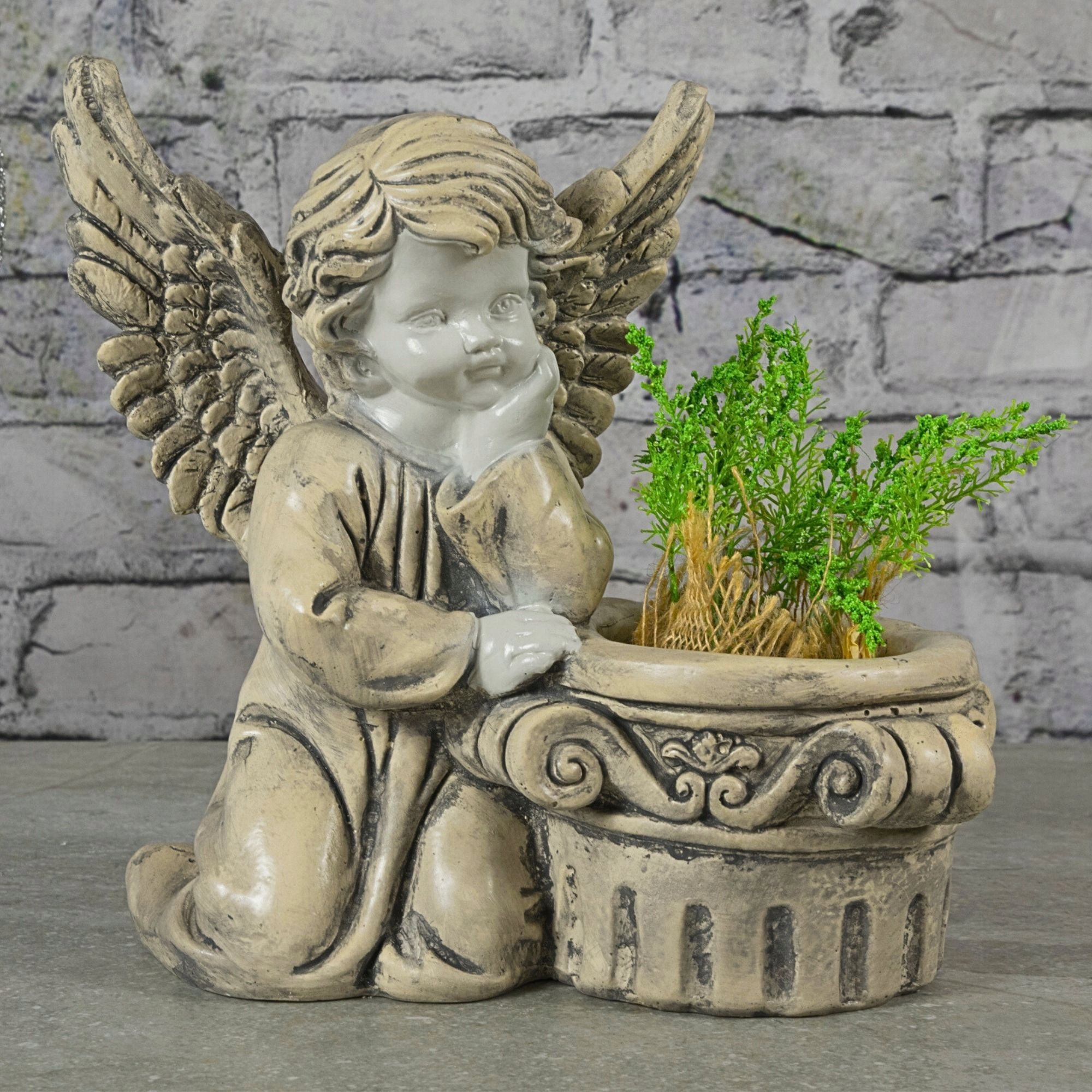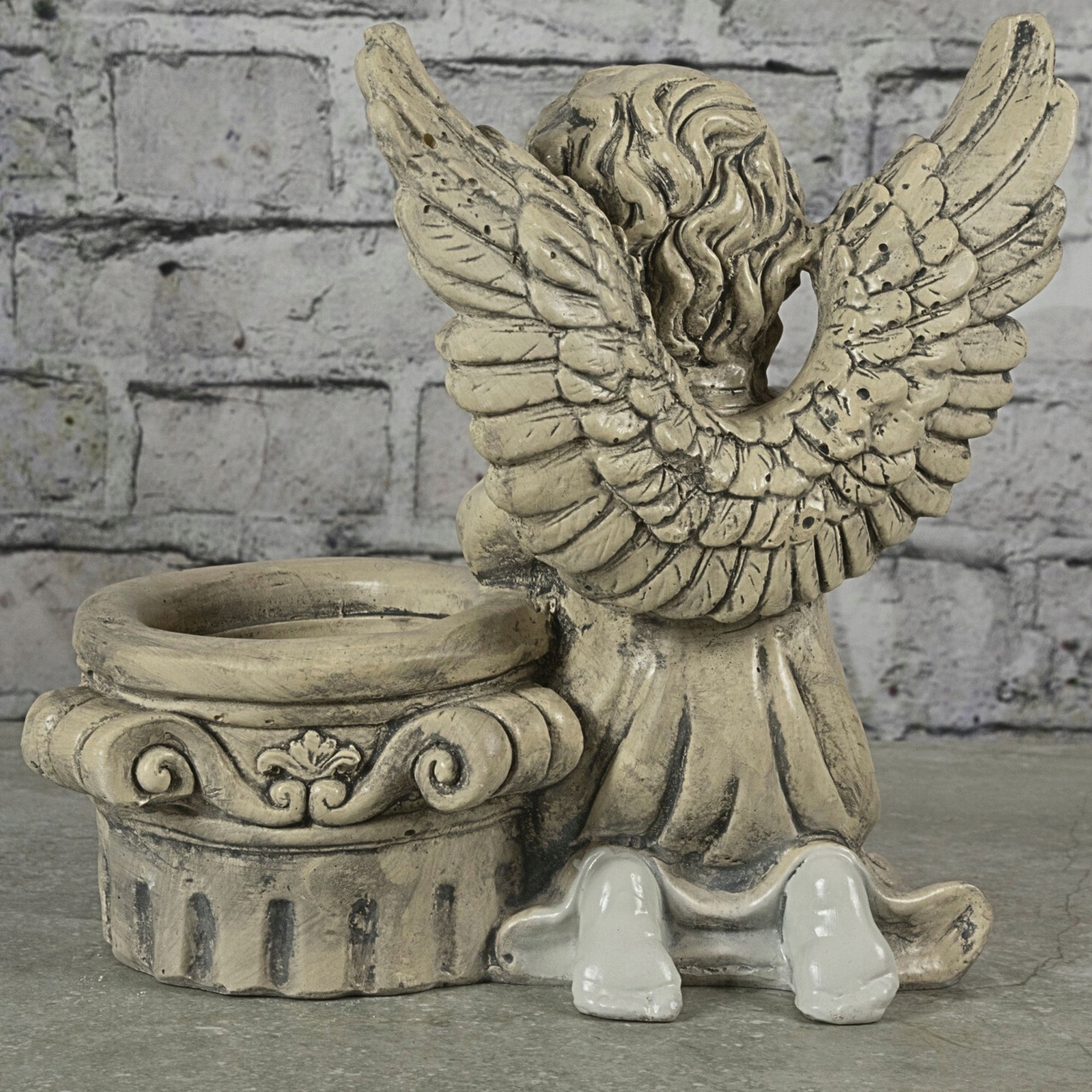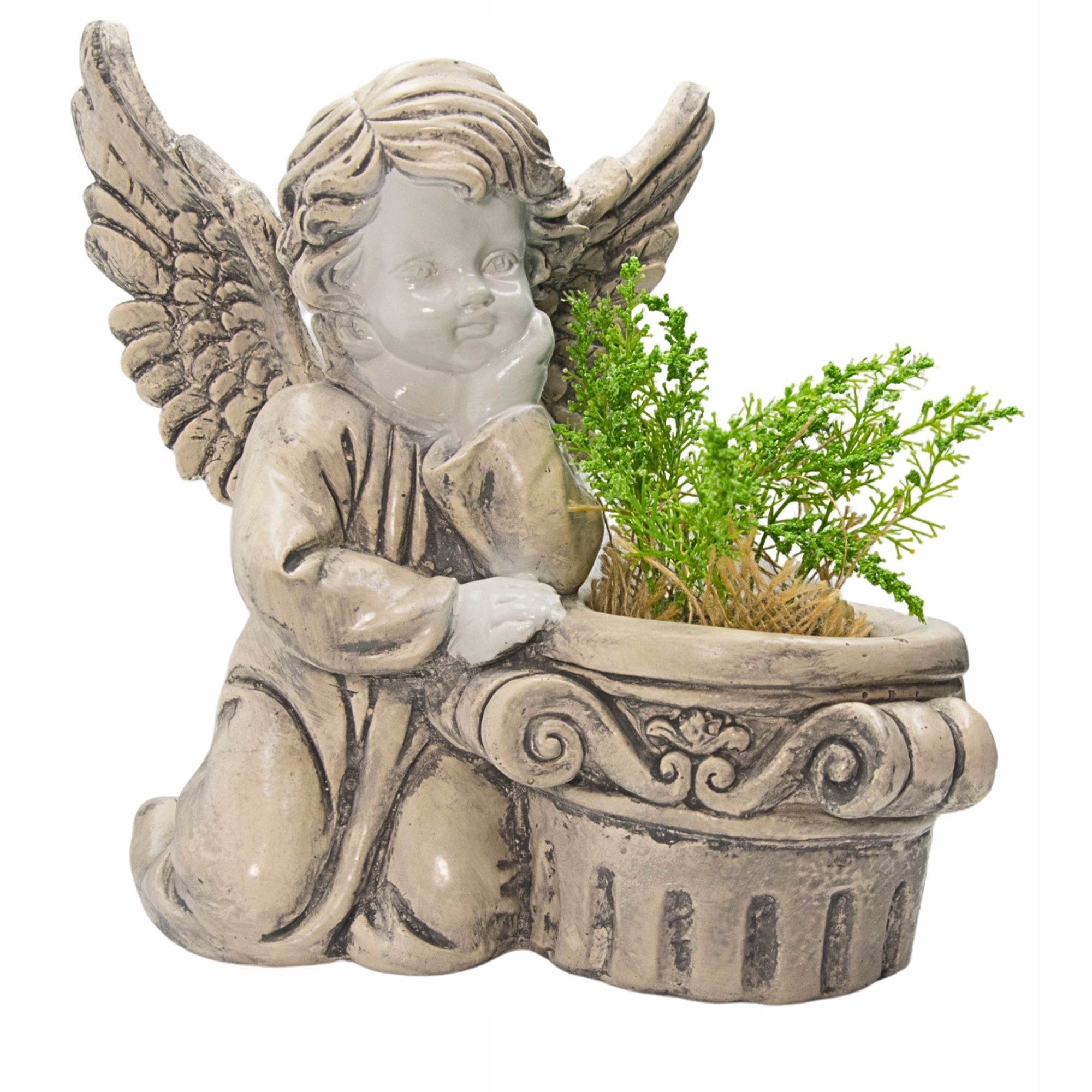 Podstawka pod znicz lub kwiaty z aniołkiem. Figurka wykonana z gipsu, który został zaimpregnowany. Można go malować. Zachwyca oryginalnym wyglądem.