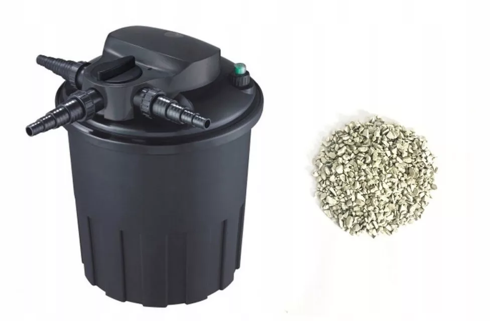 FILTRY CIŚNIENIOWE do pracy potrzebują dodatkowo pompy cyrkulacyjnej, bądź fontannowej. Pompa powinna być odpowiedniej mocy, aby przepływ wody był optymalny pod kątem 3 stopniowej filtracji. Filtry mogą być częściowo zakopane, dzięki czemu staną się niewidoczne. Filtr posiada szklaną kopułkę nad lampą uv, dzięki czemu widać, czy lampa jest sprawna.