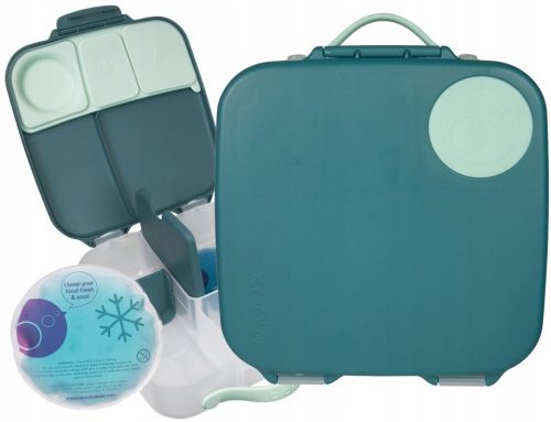 Duży lunchbox z uchwytem do przenoszenia, posiada kilka przegródek różnej wielkości, które można dopasować do pakowanego jedzenia. Wyposażony w miejsce na wkład chłodzący (w zestawie) świetnie sprawdzi się jako lunchbox do szkoły, przedszkola czy na wycieczkę.