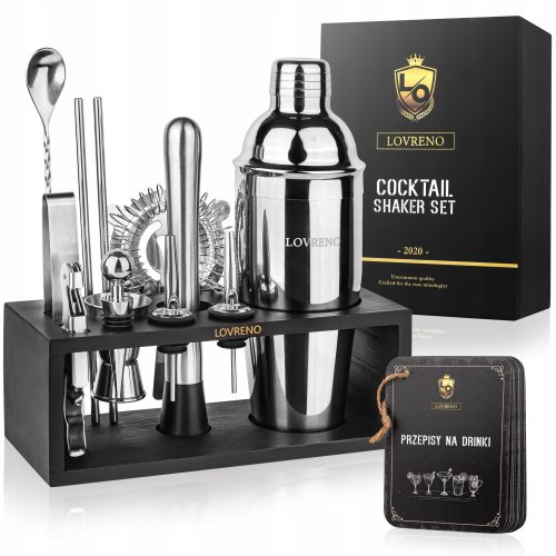 ZESTAW BARMAŃSKI LOVRENO PREMIUM 15 ELEMENTÓW KARTY DO DRINKÓW OPAKOWANIE PREZENTOWE