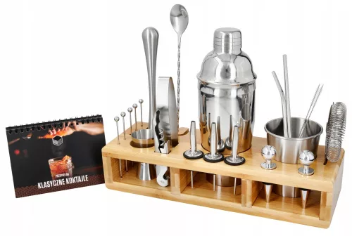 Do każdego zestawu dołączamy napisaną przez wieloletniego barmana książkę "Przepisy na klasyczne koktajle". Jest to jedyna taka książka na polskim rynku wydawniczym, w której znaleźć można 30 receptur na najpopularniejsze koktajle świata, w tym m.in. Cosmopolitan, Negroni, Whiskey Sour, czy Mai Tai. Wszystkie zawarte w książce przepisy możesz z łatwością wykonać samodzielnie w domu, a potrzebne składniki są szeroko dostępne w polskich sklepach.