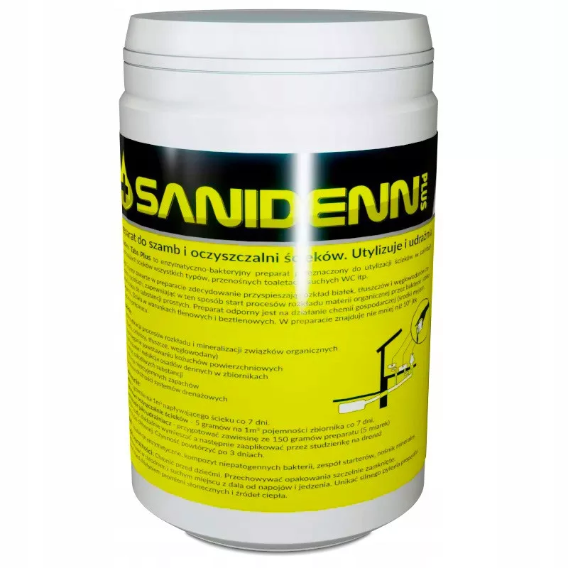 Sanidenn Plus to enzymatyczno-bakteryjny preparat przeznaczony do utylizacji ścieków w szambach, oczyszczalniach ścieków wszystkich typów, przenośnych toaletach, suchych WC itp.