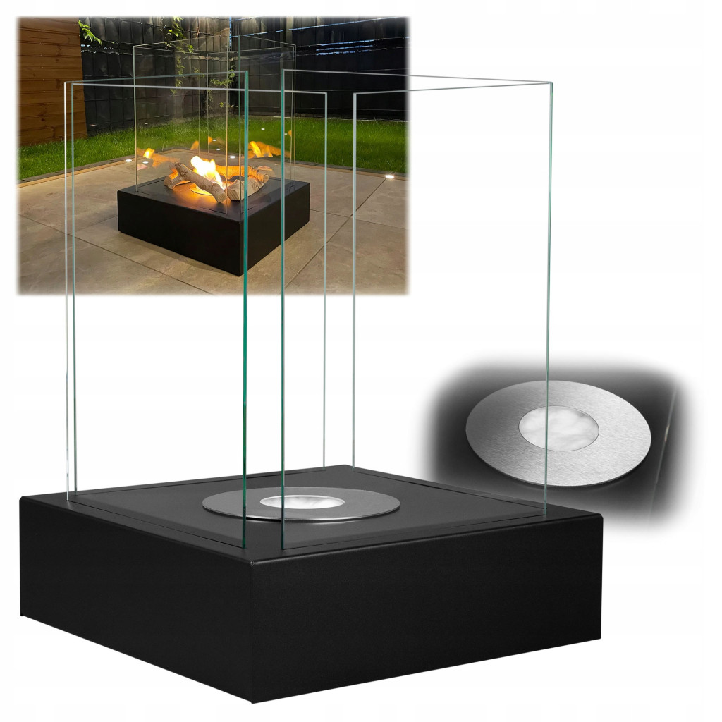 Конструкцията е изработена от висококачествена прахово боядисана стомана, устойчива на високи температури, което гарантира здравина и дълъг експлоатационен живот. Четирите закалени стъклени панела не само подчертават модерния дизайн, но и осигуряват допълнителна защита, като същевременно позволяват пълна видимост на пламъка от всички страни.