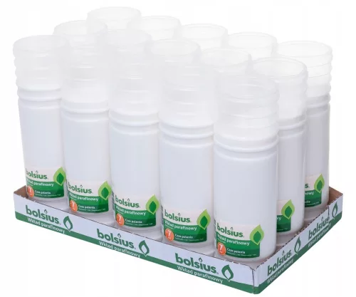 Wkłady do zniczy Bolsius produkowane są z granulatu parafinowego najwyższej jakości, co daje pewność optymalnego czasu palenia oraz wypalenie się do końca. Dzięki centralnemu umieszczeniu knota wypalają się czysto i równomiernie, przez co nie niszczą lampionów.