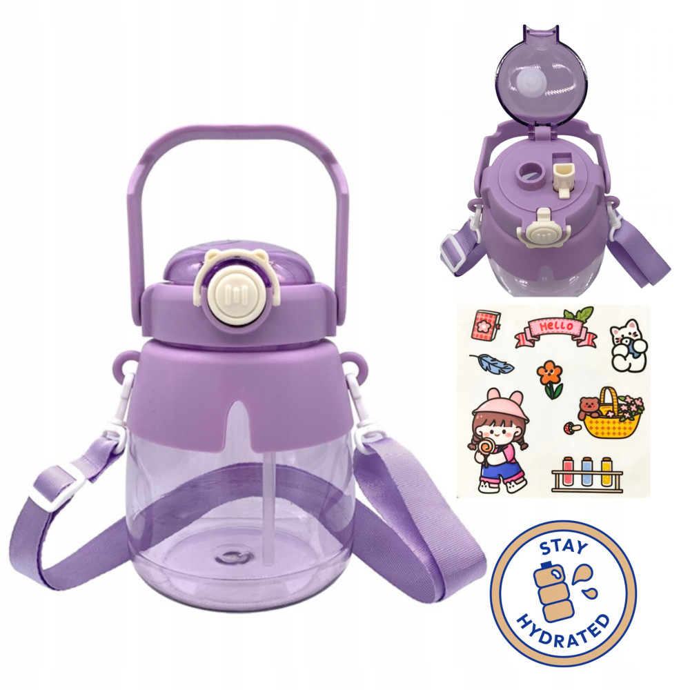 Bidon na wodę do szkoły butelka 1L 1000 ml na pasku z uchwytem na siłownię