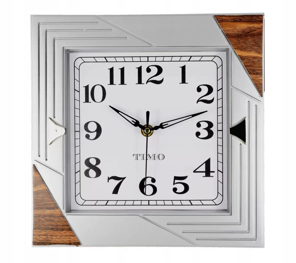 Przedmiotem sprzedaży jest kwadratowy, czytelny zegar ścienny.