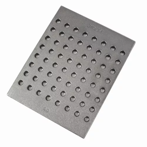 Dwustronny ruszt żeliwny o otworach stożkowych, zapewniający bezproblemowy przesyp nawet mokrego popiołu.
