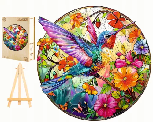 DREWNIANE PUZZLE DLA DOROSŁYCH DUŻE KOLIBER WITRAŻ