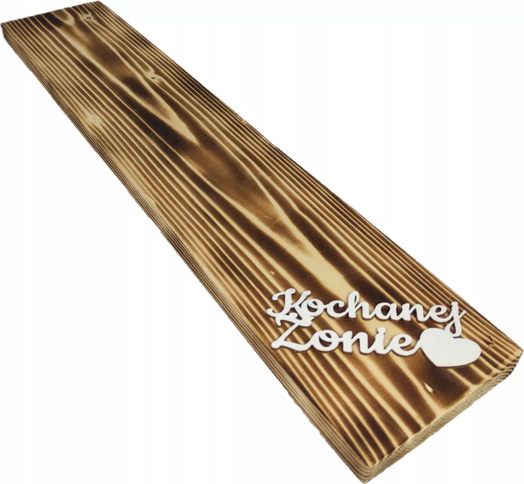 np: deska płaska w kolorze czarnym + napis ,,Kochamy,, w kolorze białym