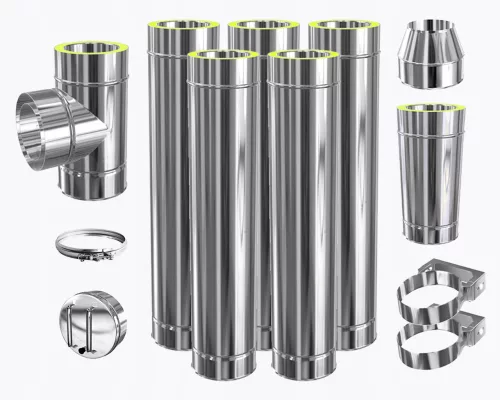 PAKIET KOMIN DWUŚCIENNY IZOLOWANY ZEWNĘTRZNY STALOWY KWASOODPORNY I ŻAROODPORNY fi 160 / 6 mb