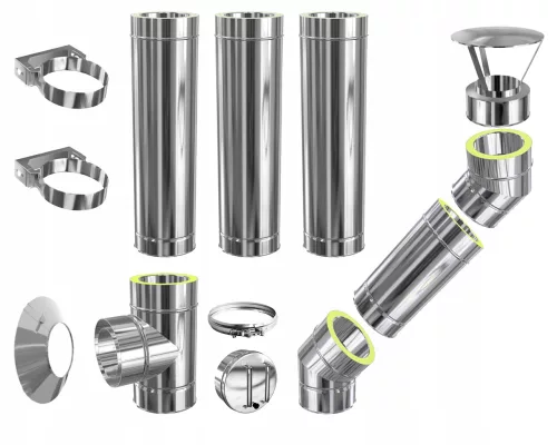 PAKIET KOMIN DWUŚCIENNY IZOLOWANY ZEWNĘTRZNY STALOWY KWASOODPORNY I ŻAROODPORNY fi 120 / 4 mb