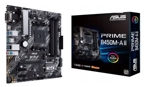 Płyta główna AMD B450 (Ryzen AM4) micro ATX z obsługą M.2, HDMI / DVI-D / D-Sub, SATA 6 Gb / s, 1 Gb Ethernet, USB 3.2 Gen 2 Type-A, BIOS FlashBack i oświetleniem Aura Sync RGB wsparcie.