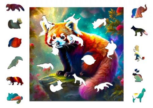 Przepiękne drewniane puzzle, przedstawiające ilustrację PANDY MAŁEJ