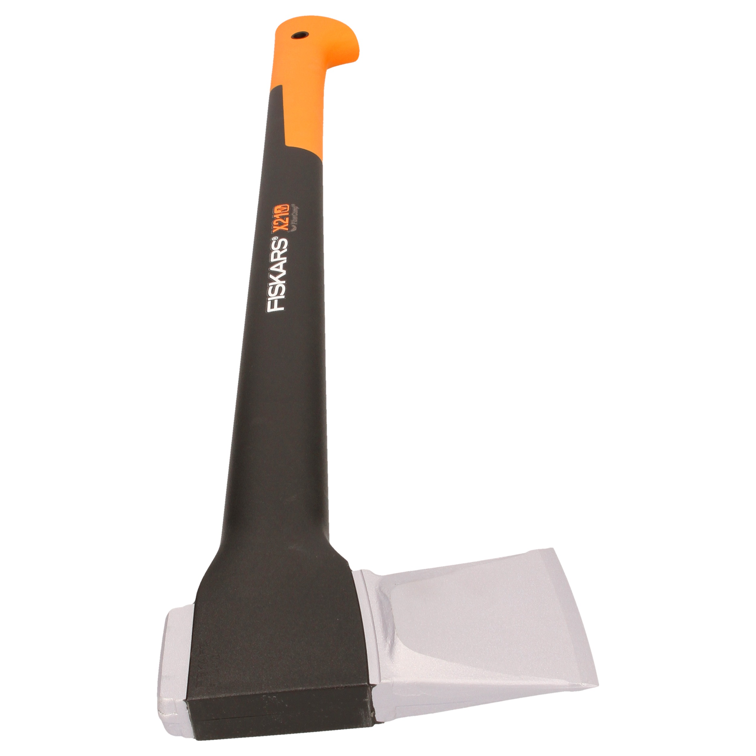 Pomarańczowa część trzonka posiada specjalną strukturę, która zapobiega przesuwaniu się narzędzia w dłoni podczas pracy, Haczykowate zakończenie trzonka gwarantuje pewny uchwyt i uniemożliwia wyślizgnięcie się siekiery