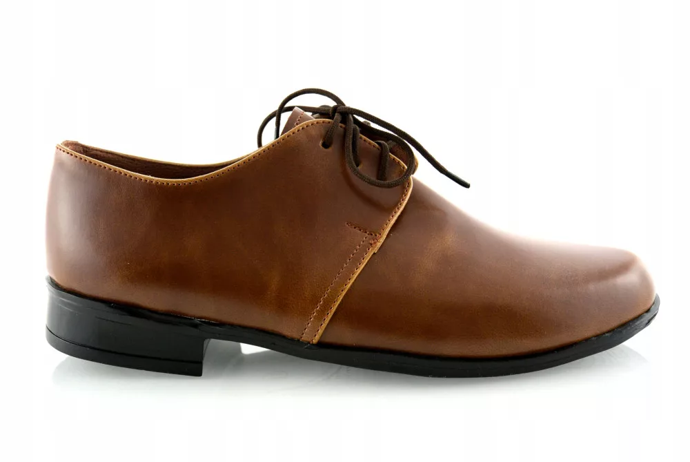 BRĄZOWE GŁADKIE CHŁOPIĘCE OBUWIE GARNITUROWE