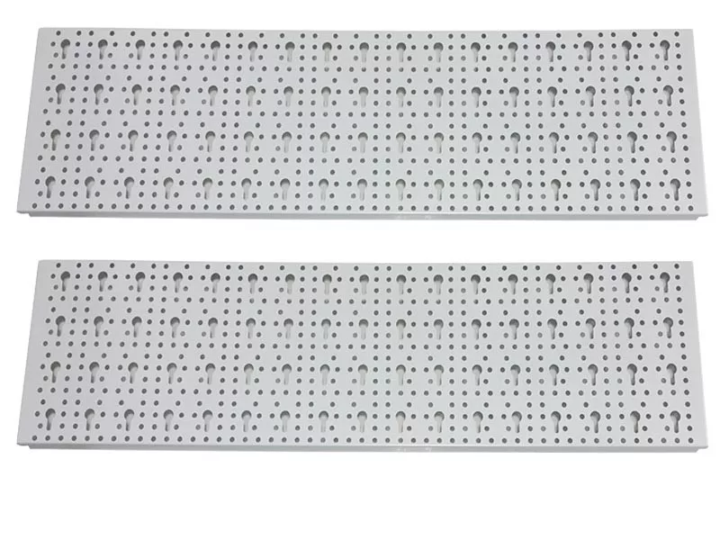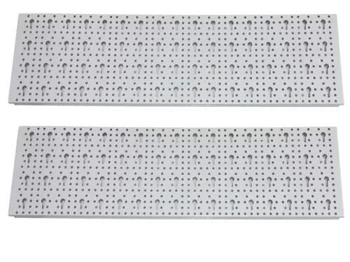 Metalowe płyty perforowane (w rozmiarze 80 x 20 cm) są podstawowym elementem tablicy na narzędzia. Płyty perforowane wpinane są w listwy nośne (o dł. od 50 do 200 cm) w ten sposób możemy tworzyć dowolnej wielkości zabudowy oraz łączyć je z innymi elementami (patrz galeria poniżej).