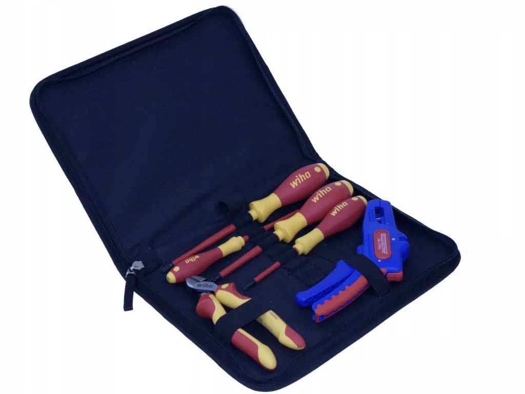 Podstawowy zestaw narzędzi dla elektryków WEICON I WIHA z izolacją VDE umożliwia bezpieczną pracę przy częściach znajdujących się pod napięciem do 1000 V AC. Opatentowane wzornictwo rękojeści SoftFinish chroni mięśnie rąk w trakcie wykonywania prac, a smukła budowa wkrętaków umożliwia wygodny dostęp nawet do głęboko osadzonych elementów. Izolowany obcinak boczny do dużych obciążeń z technologią DynamicJoint posiada unikalną konstrukcję, dzięki czemu redukuje nakład siły nacisku potrzebnej do cięcia. Poręczna, w pełni otwierana torba narzędziowa z zamkiem błyskawicznym i uchwytem pozwoli utrzymać narzędzia w dobrym stanie i zapewni przejrzystą organizację.