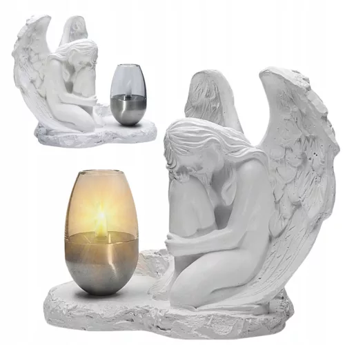 ➡️ Ozdobna gipsowa figurka ogrodowa, nagrobna z lampą LED w kształcie aniołka