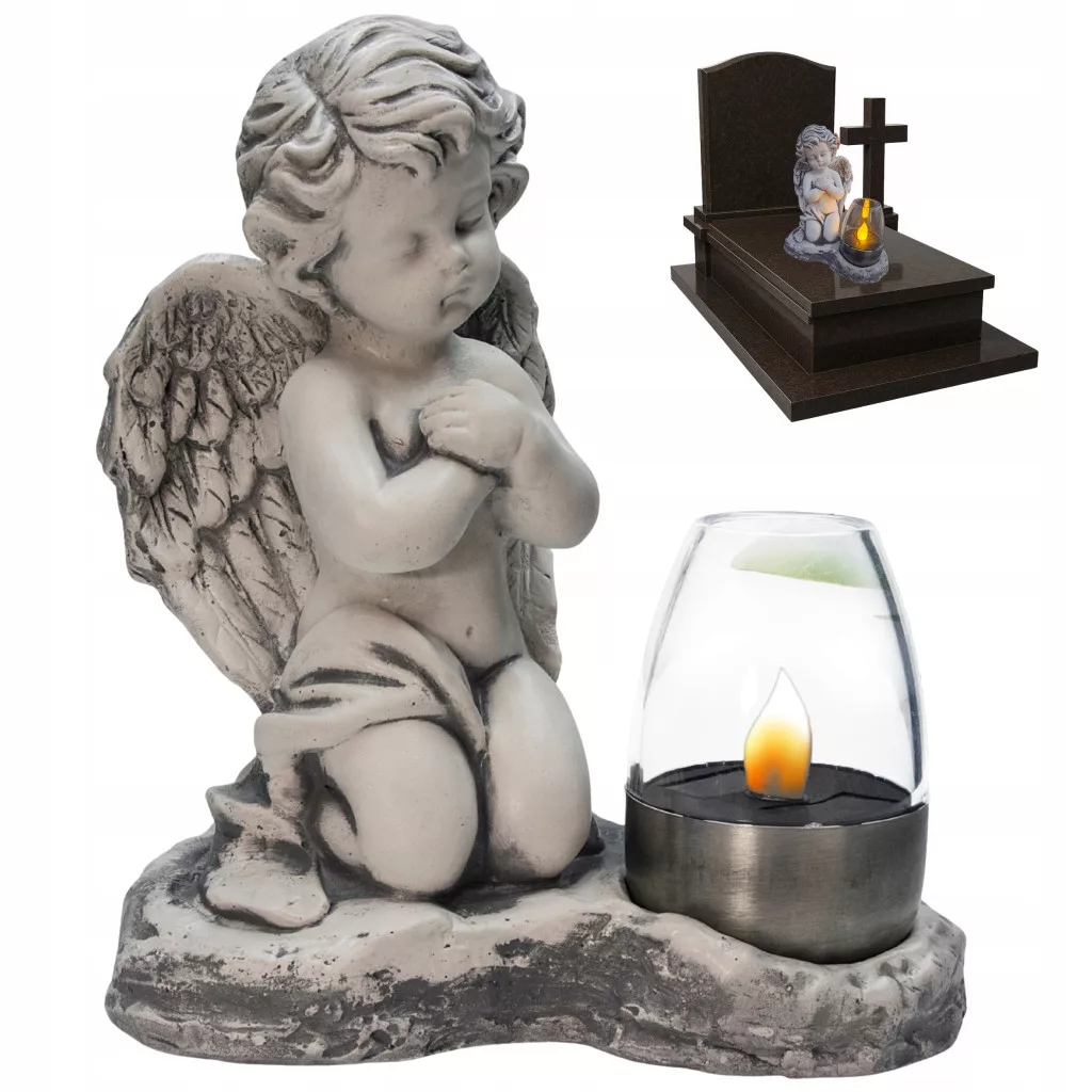 ➡️ Figurka i lampka są ze sobą połączone, tworząc stabilną, gotową do ustawienia całość, która stanowi piękną dekorację nagrobną.