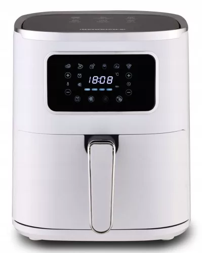 Poznaj nowoczesną frytkownicę beztłuszczową HEINRICH'S HFR 8216 w eleganckim, białym kolorze. To wszechstronne urządzenie typu frytkownica na gorące powietrze, które pozwala na przygotowywanie zdrowszych wersji ulubionych potraw. Dzięki dużej pojemności 5 litrów i mocy 1450 W, idealnie sprawdzi się podczas gotowania dla całej rodziny. Urządzenie oferuje szeroki zakres temperatur, od 80 °C do 200 °C, co umożliwia precyzyjne dopasowanie do różnych przepisów.