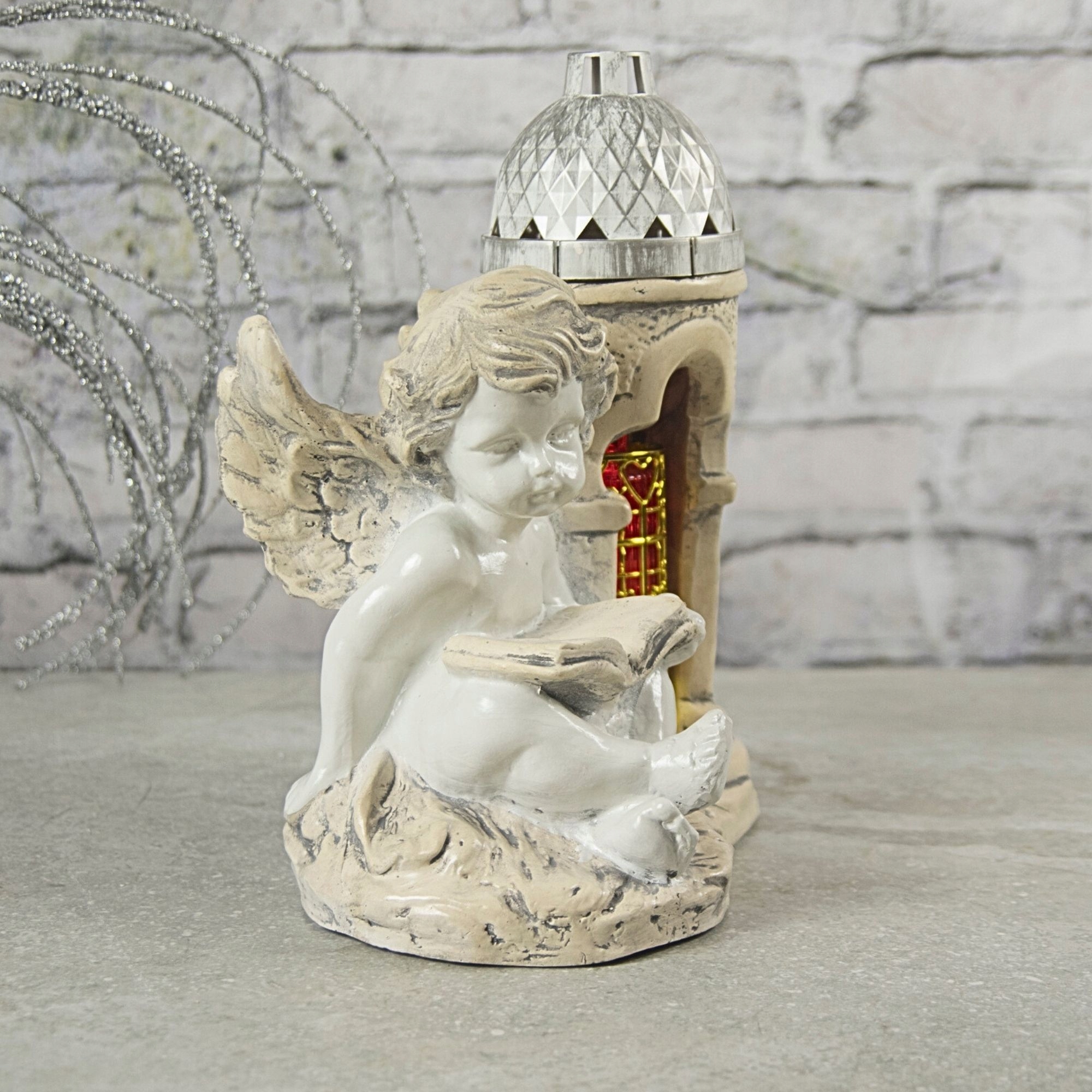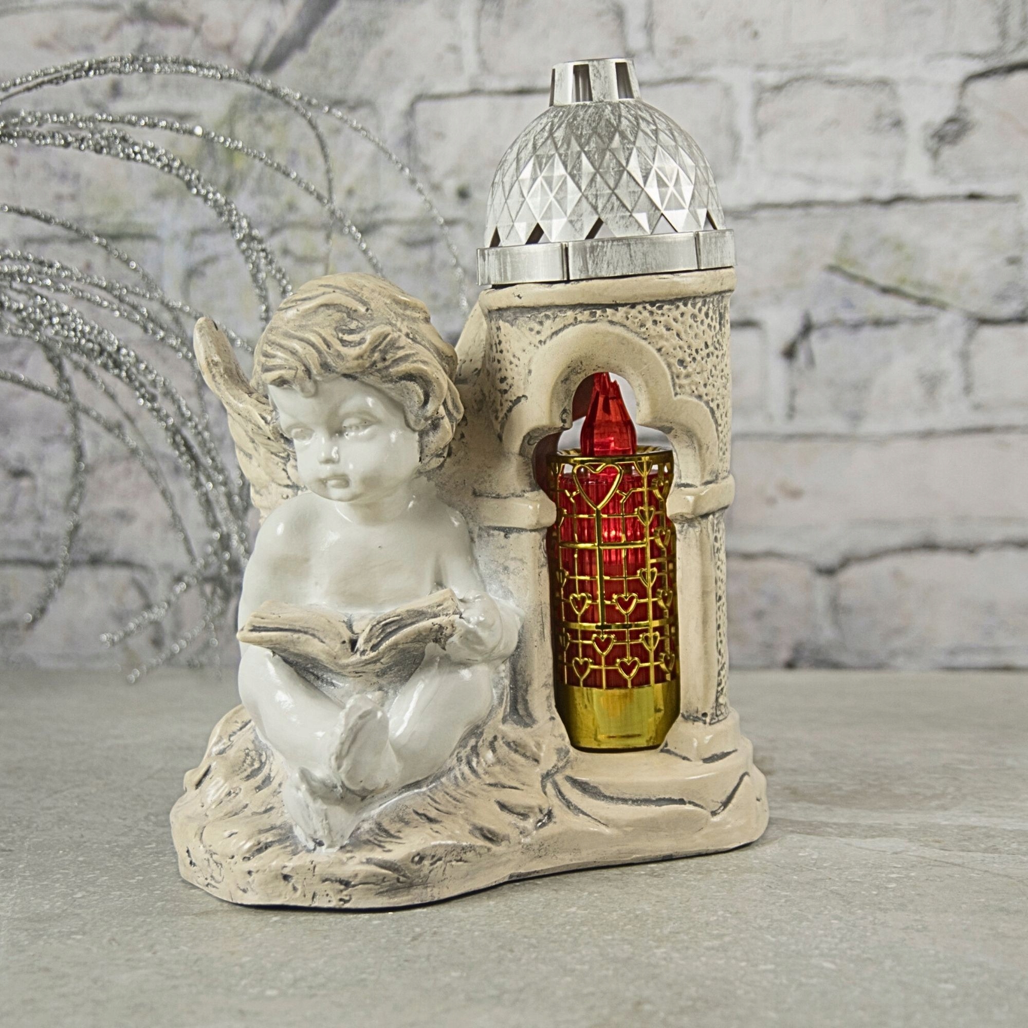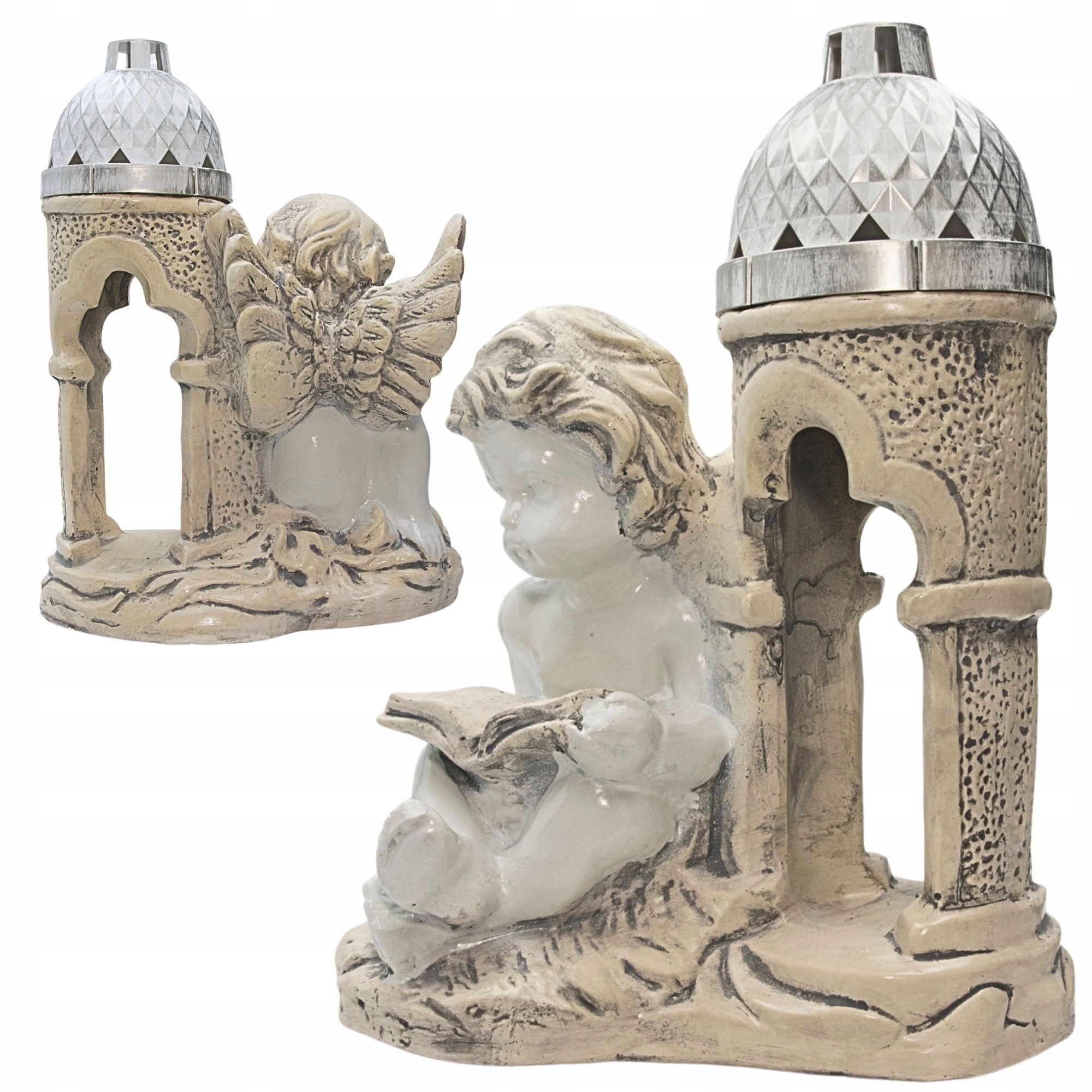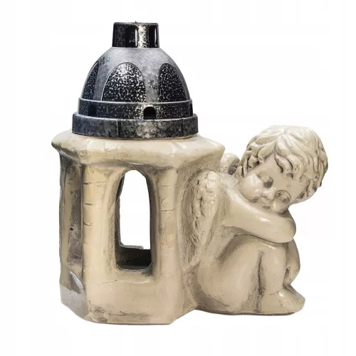 Znicz z aniołkiem wykonany z gipsu, który został zaimpregnowany. Można go malować. Zachwyca oryginalnym wyglądem.