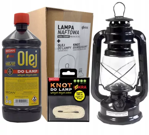 ZESTAW Z LAMPĄ NAFTOWĄ CZARNĄ W KARTONIE.