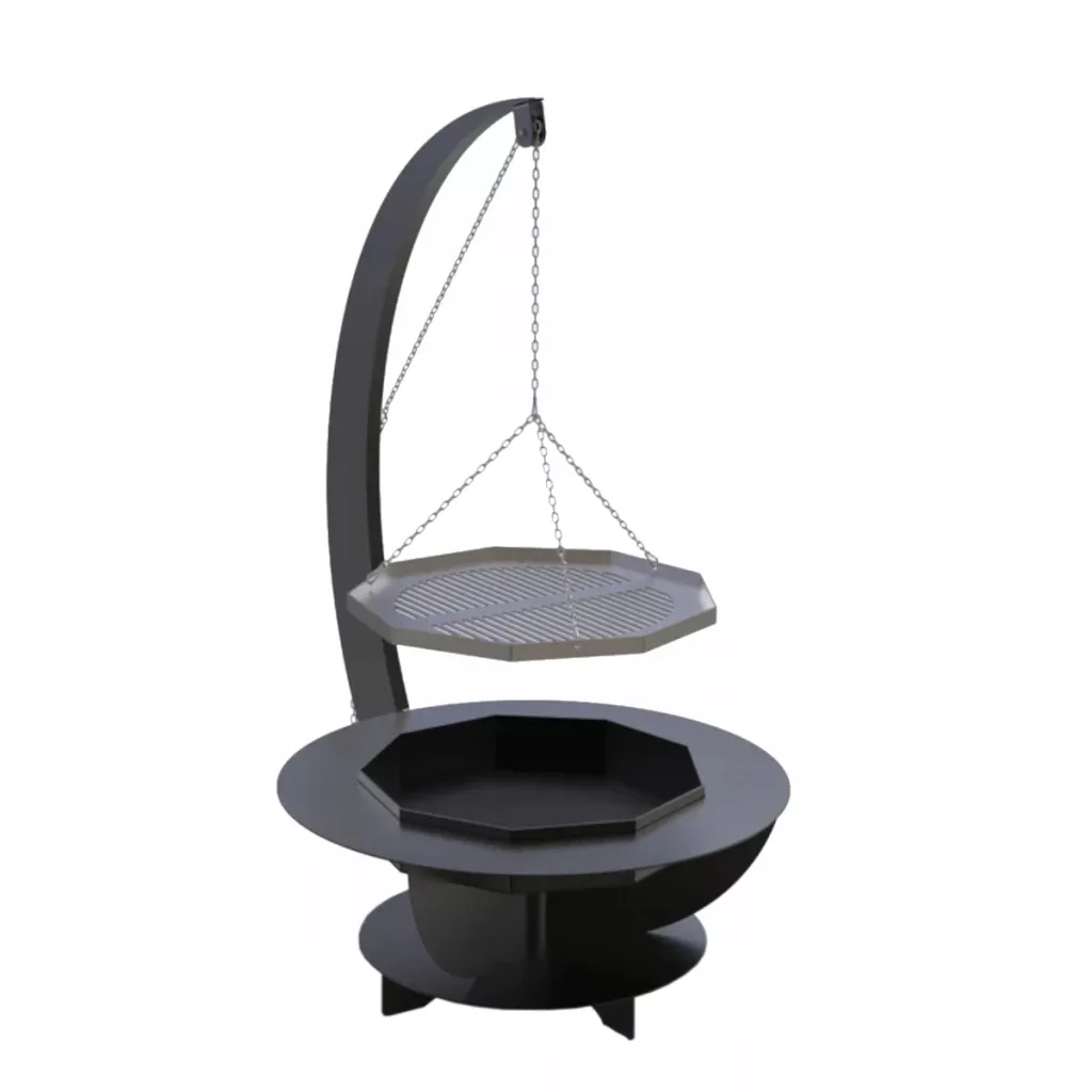Stylowe palenisko Skorpion to doskonałe rozwiązanie do ogrodu, które łączy estetykę z praktycznym zastosowaniem. Solidna stalowa konstrukcja, pokryta żaroodporną farbą, zapewnia trwałość i odporność na wysokie temperatury. Zawieszony na łańcuchach ruszt grillowy pozwala na wygodne przygotowanie potraw nad ogniem, a ergonomiczny kształt i masywna podstawa gwarantują stabilność.