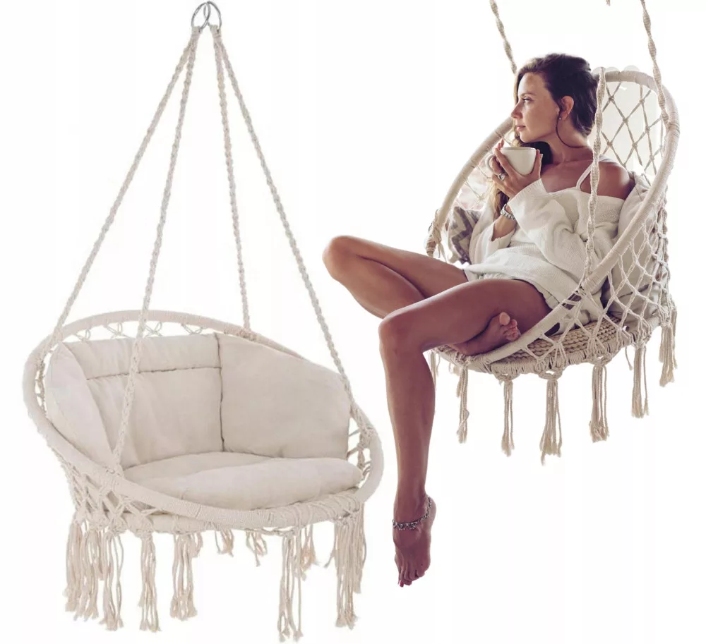 ✅ KRZESŁO WISZĄCE ✅ DUŻA MEIĘKKA PODUSZKA ✅ FOTEL BRAZYLYJSKI ✅ UDŹWIG 150 KG ✅ IDEALNY DO POKOJU SALONU ✅ FOTEL OGRODOWY ✅ POMAGA SIĘ ZRELAKSOWAĆ I ODPRĘŻYĆ ✅ MOCNY ✅ ŁATWY MONTAŻ ✅ PIĘKNA PLECIONA MAKRAMA