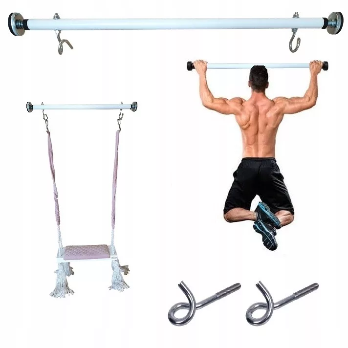 Wielofunkcyjny drążek z przykręcanymi hakami umożliwiający wieszanie naszych huśtawek (deski i misie) i nie tylko.