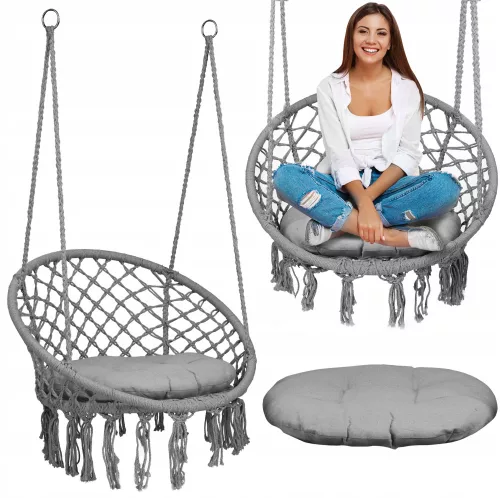 Wygodny fotel wiszący w nowoczesnym i będącym na czasie stylu boho.