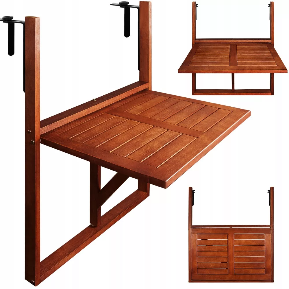Praktyczny stolik balkonowy z drewna akacjowego to absolutna oszczędność miejsca na Twoim balkonie.