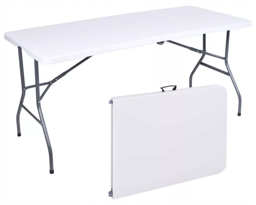 Składany stół kempingowy/cateringowy. Bardzo praktyczny i lekki. Konstrukcja wykonana ze stali. Blat wykonany z mocnego tworzywa sztucznego.