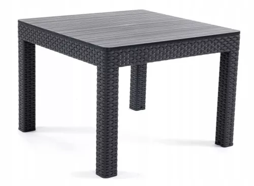 Stolik jest wykonany z polipropylenu - trwałego tworzywa sztucznego. Nogi do złudzenia przypominają plecionkę rattanową, blat zaś tworzy świetną imitację desek.