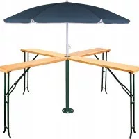 Wyjątkowy stół do namiotu piwnego z 4 ramionami, który może pomieścić do 20 osób. Znakomity jako dodatek do zwykłych zestawów namiotów piwnych. Na środku drewnianego stołu znajduje się otwór, w który można włożyć parasol.