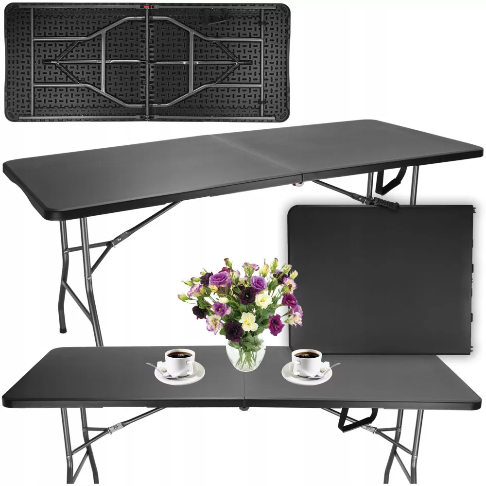 Duży cateringowy stół składany w walizkę, idealny do zastosowania w domu jak i ogrodzie, cateringu na bankietach i innych imprezach.