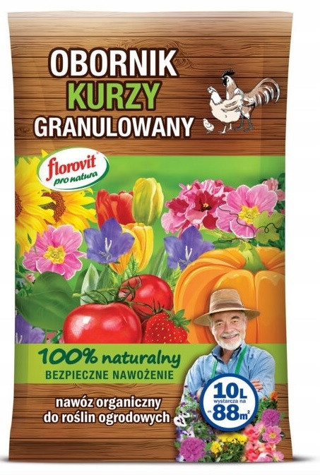 Nawóz ekologiczny, obornik kurzy granulowany produkowany jest z obornika kurzego poddanego procesowi granulacji. Nawóz dostarcza roślinom składników pokarmowych naturalnego pochodzenia takich jak azot, fosfor, potas i magnez.