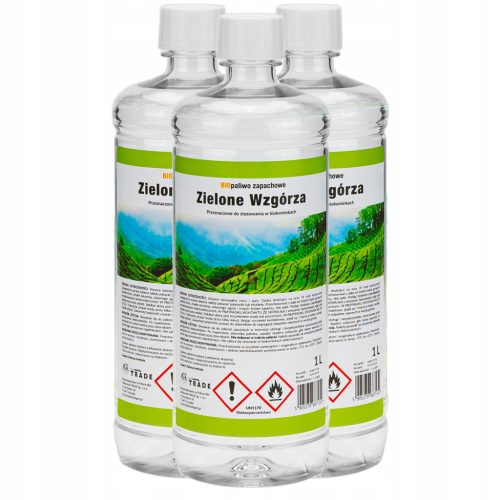 Предимства:Екологично и безопасно за здраветоПодходящо за всички видове биокаминиСвеж аромат на зелени хълмове за релакс и уютБез дим, сажди или пепелИкономично и ефективно – до 5 часа горене на литърПолски производител с доказано качество и сертификатЛесно дозиране чрез прикрепен дифузер