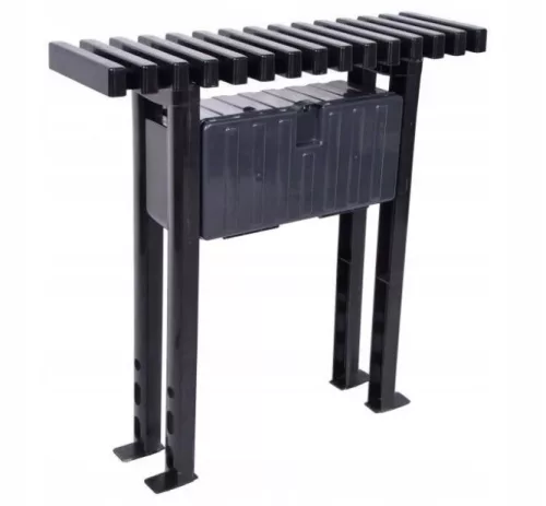W nogach ławki znajdują się otwory do zablokowania jej przed wyrwaniem z ziemi.