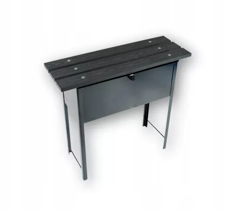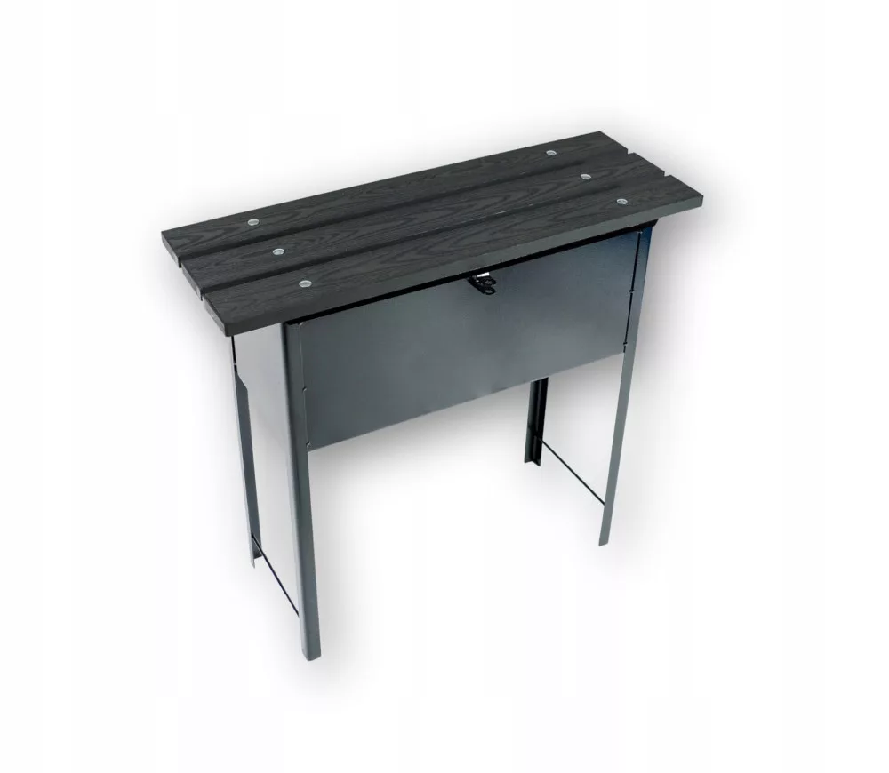 Ławka na cmentarz ze skrzynką i siedziskiem wykonanym z desek kompozytowych w kolorze antracytowym. Ławka posiada zintegrowaną skrzynkę na narzędzia i akcesoria do pielęgnacji grobu.