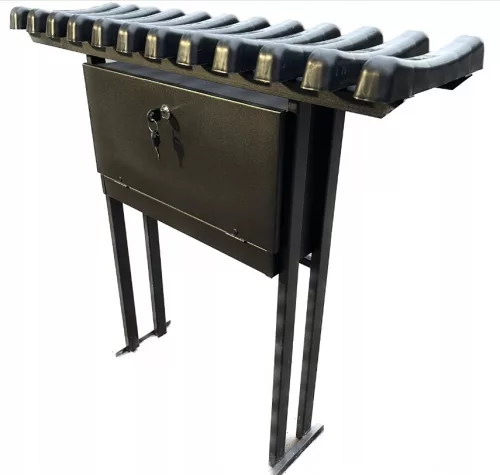 ➡️ Dodatkowo stelaż ławki jest wzmocniony profilem metalowym pod skrzynką pomiędzy nogami stelażu.