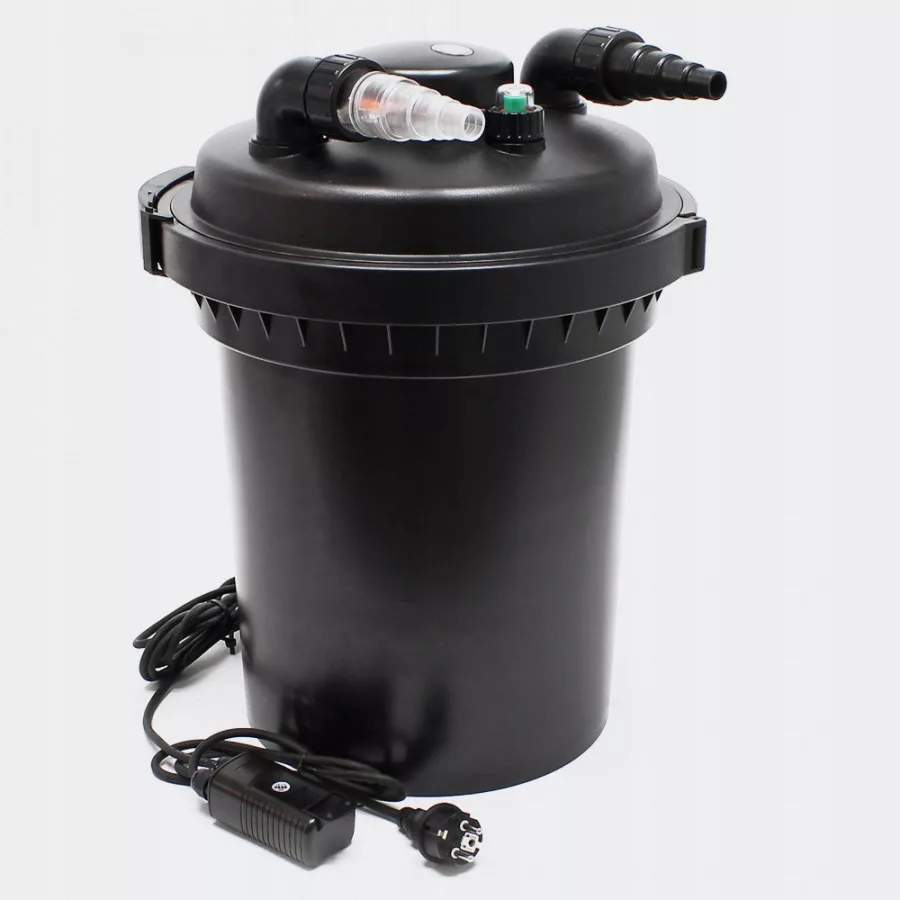Filtr ciśnieniowy z lampą UV do jeziorek z rybami do 6000 l, bez ryb do 12000 l.