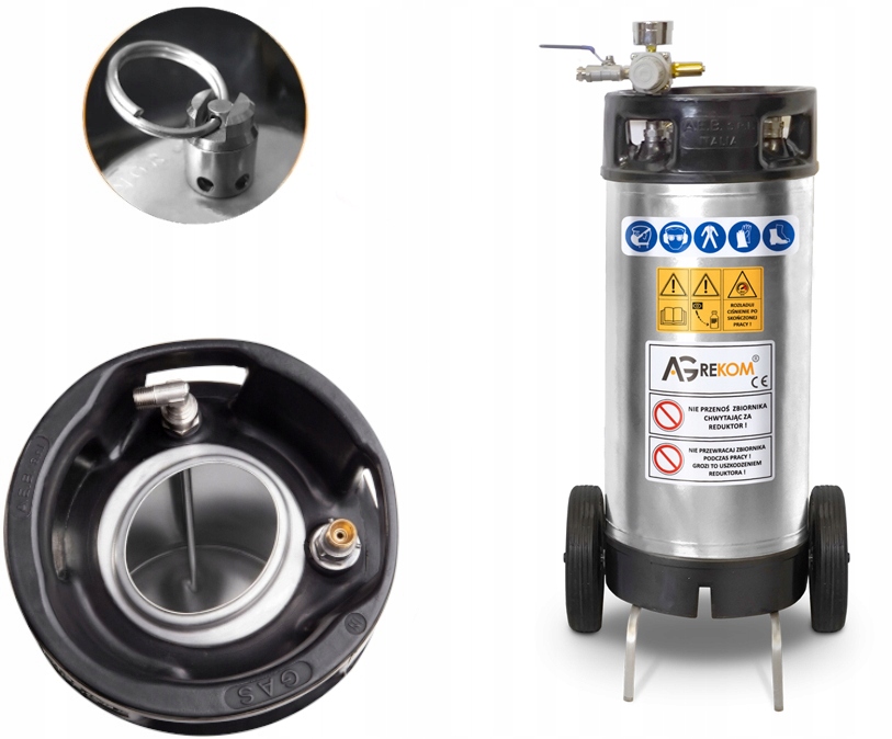 Zbiornik po otworzeniu wlewu napełniamy roztworem soli, zamykamy wlew i po podłączeniu do sprężarki i ustawieniu ciśnienia roboczego - możemy pracować. Wszystkie czynności uzupełnienia zbiornika o kolejne 18 litrów pochłania około 1-2 minuty czasu. Do zasilania wystarczy również mała sprężarka elektryczna lub ręczna !!! 18 litrów solanki, przy pomocy tego urządzenia nastrzykuje się w ciągu 10 min !!! Nastrzykiwarka pneumatyczna jest produkowana od 3 lat i sprawdzona przez setki użytkowników. Do zasilania można również wykorzystać butle CO2 z reduktorem jako bufor sprężonego gazu.