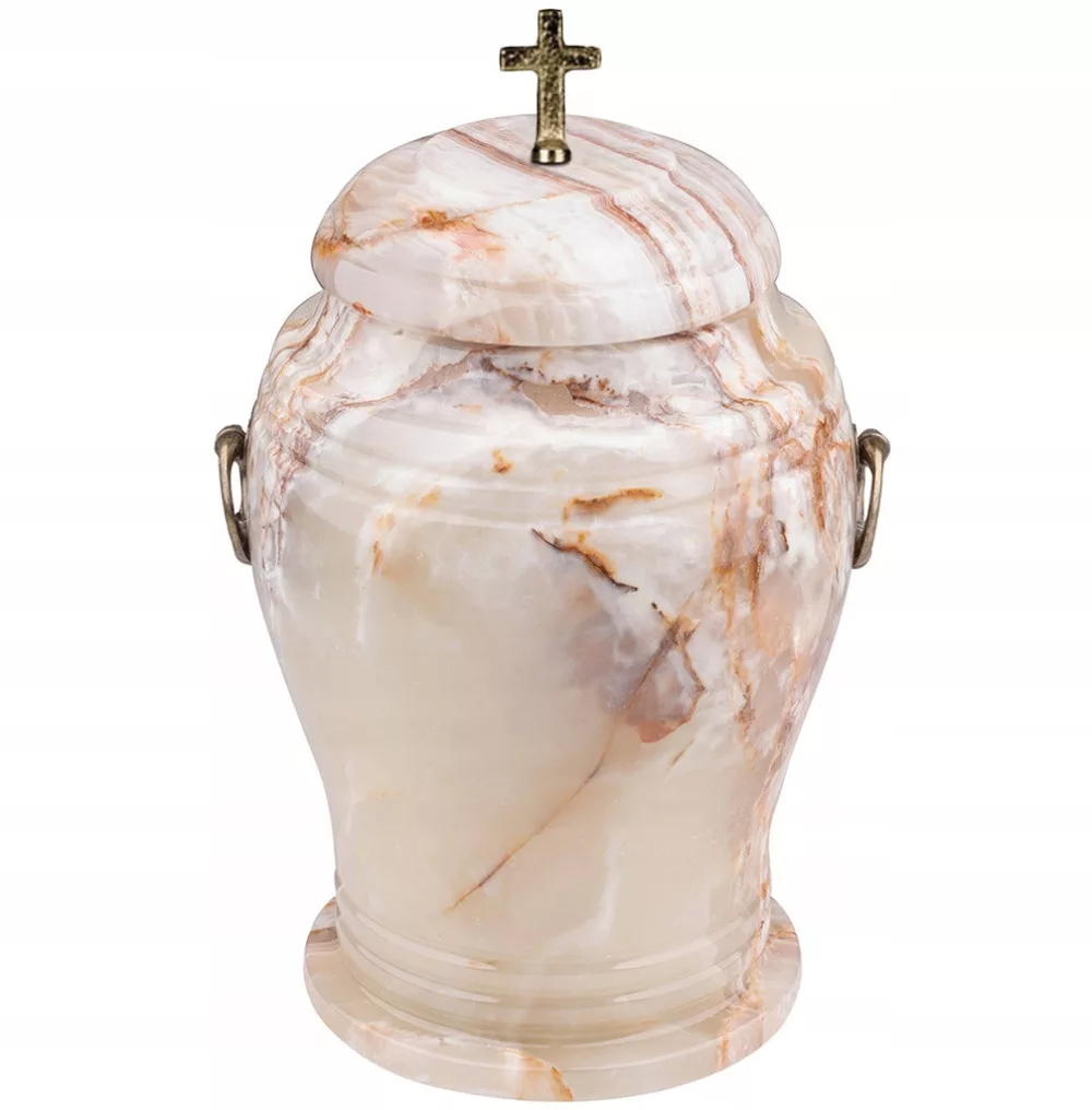 Ta urna została stworzona z dbałością o trwałość i wyjątkowy wygląd. Wykonana z naturalnego kamienia onyx, jest ciężka, co zapewnia jej stabilność i solidność. Kamień onyx cechuje się unikalnymi wzorami i pięknym połyskiem, co nadaje urnie niepowtarzalny charakter.