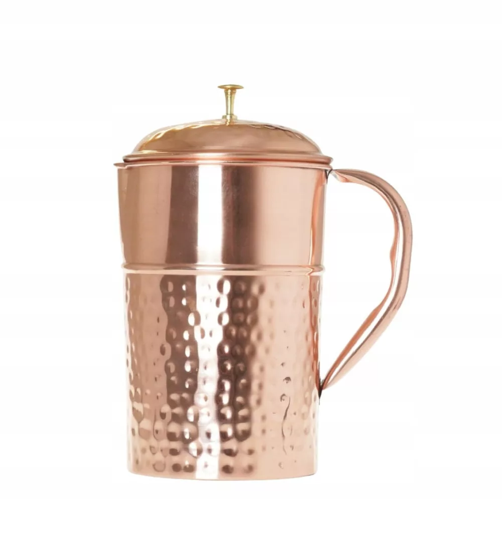 Ciekawy wzór, piękny błysk i wyjątkowe właściwości miedzi to to, co wyróżnia 2 litrowy dzbanek BALANCE. To miedziane naczynie z pokrywką wykonane ręcznie w Indiach będzie stanowiło idealny dodatek do codzienności, nie tylko ucieszy oko ale i uzdatni wodę.