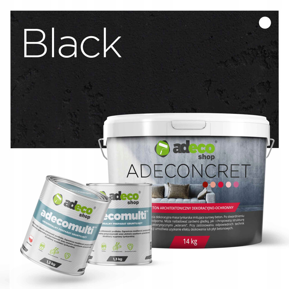 Gotowy do użycia efekt dekoracyjny imitujący surowy beton dostępny w 13 modnych kolorach (w tym m.in. czarny, biały i 6 odcieni szarości):