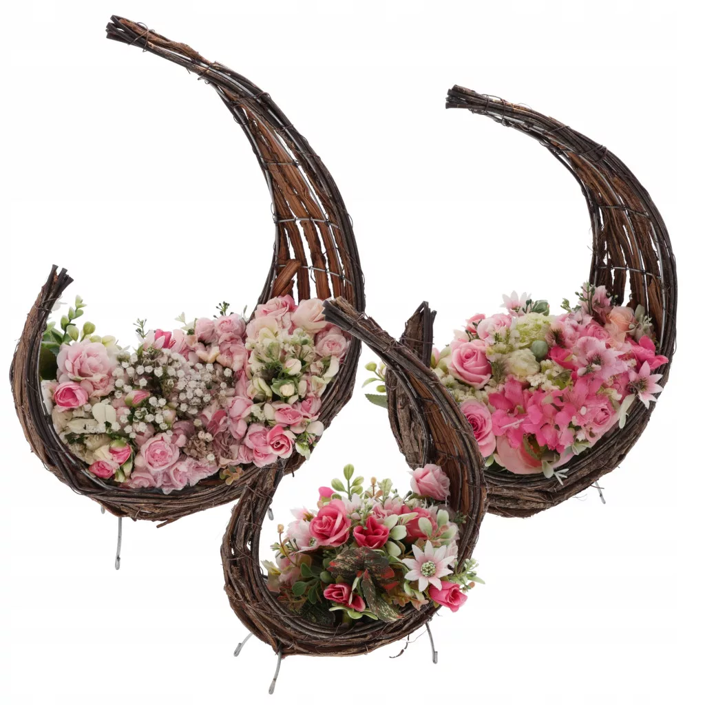 Kształt półksiężyca fantastycznie podkreśla kwiatowe kompozycje, a przestrzeń na gąbkę pozwala na ich wygodne formowanie.
